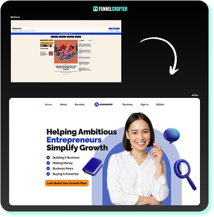 As a Funnel Designer, I help coaches, creators, and service-based entrepreneurs revamp outdated funnels into high-performing a that attract, engage, and convert. My redesign process focuses on improving structure, message flow, and visual impact — so your funnel not only looks better but performs better.